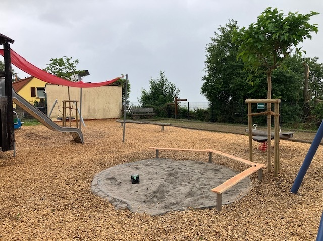 - Besonderes Augenmerk lag auf der Ausstattung für Kinder unter drei Jahren (U3). Neue, altersgerechte Spielgeräte laden die Kleinsten zum sicheren Entdecken, Spielen und Bewegen ein. Gleichzeitig bietet der neu gestaltete Spielplatz vielfältige Spielmöglichkeiten für alle Kinder.